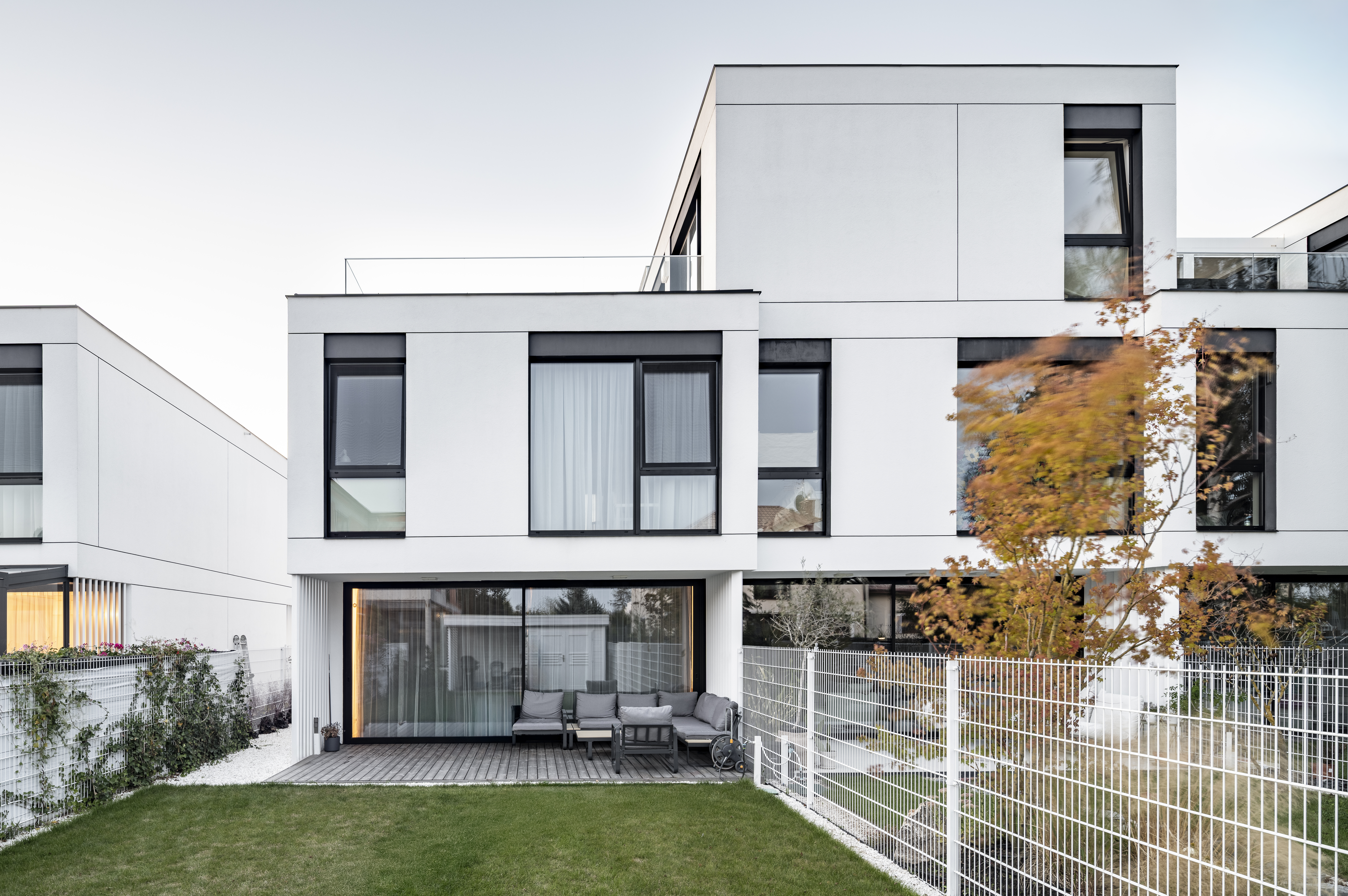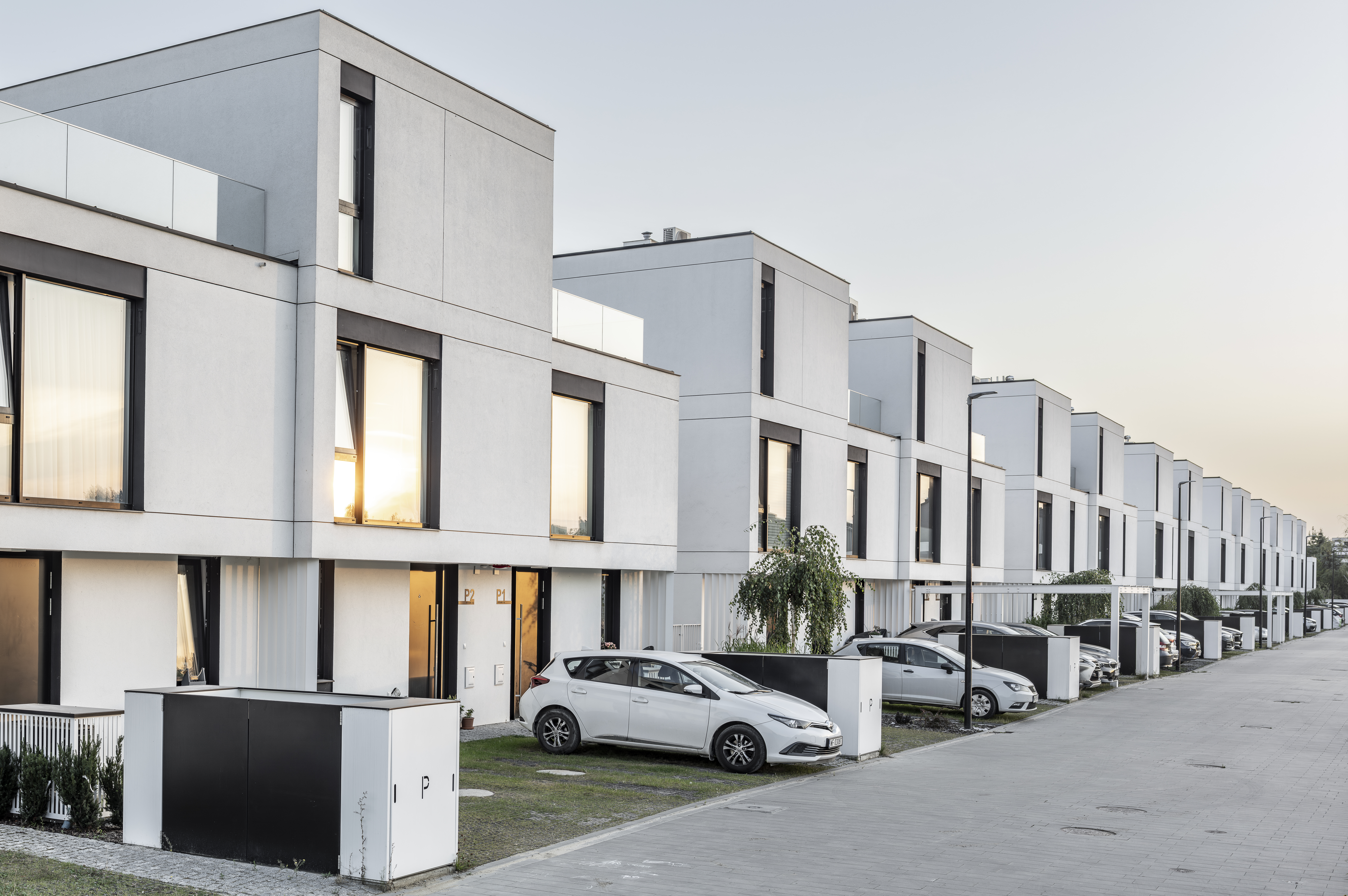 Projekt osiedla domów jednorodzinnych w zabudowie bliźniaczej. Zlokalizowany w Warszawie w Dzielnicy Wawer